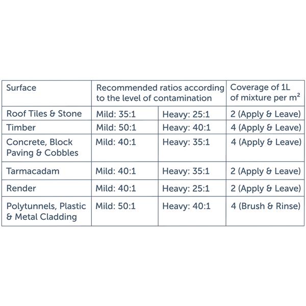 Gradual lightening of surface contamination should be visible within the first few weeks after treatment. Severely affected areas may require a second application, though this is not usually necessary. Agitation with a stiff brush is recommended for heavily contaminated surfaces.